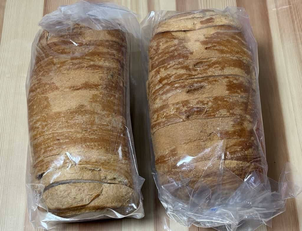 長さ約25cm、1枚の厚みは約2.5cm前後で10切れでした。端っこだけ少し薄くなっております。1枚のサイズとしては通常の食パンより若干小さめでした。