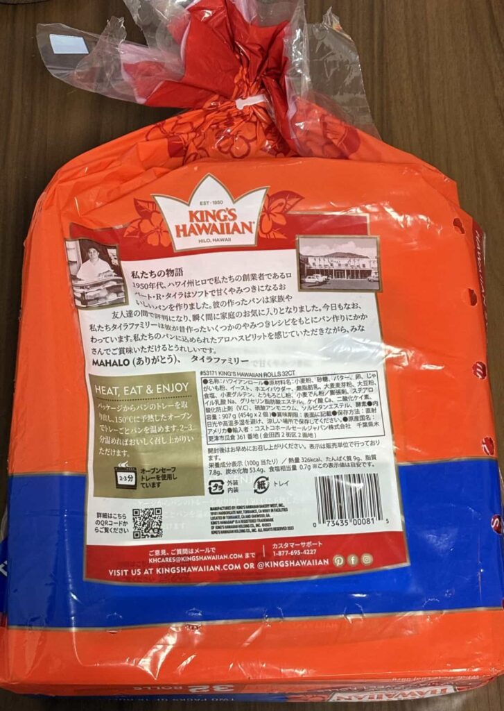 1個約43円、1食3個で約129円と、ディナーロールに比べたら少々高めですが、甘い変わったパンを食べてみたい方にはおすすめです。ハワイで作られたパンなので物価や輸入コストを考えるとコスパは悪くないと思います。