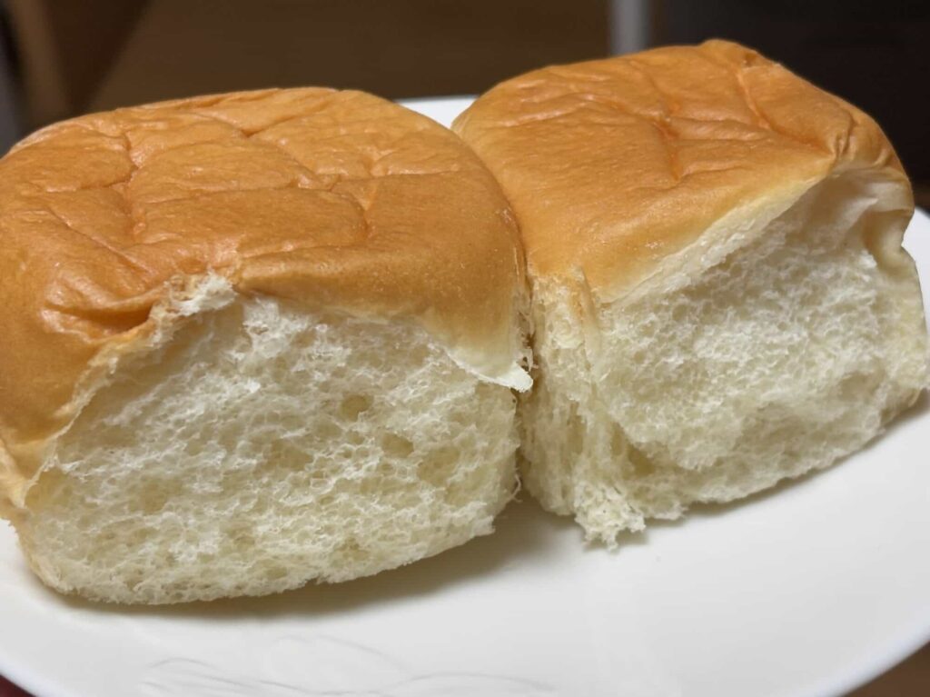 ふわふわなので手でちぎるとへこみができます。コストコのディナーロールとは違い、スイートの名前の通り食べた瞬間甘さが最初にきます。そこまで甘くはなくちょうど良い甘さでそのままでも美味しいですし、塩気のあるものとも相性が良さそうなパンです。しっとりしている部分もあれば少しパサついた部分もありますので少し焼いて食べるのがおすすめです。朝食だと3個で十分満足できると思います。