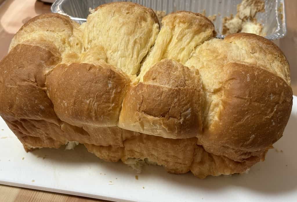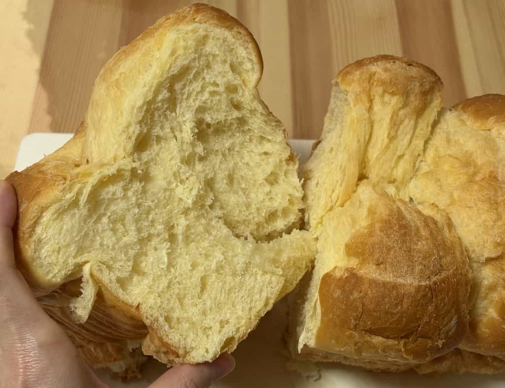 とにかくふわふわでそのままでもかなり美味しいです。バターの香りが良く、卵の風味も少し感じられます。焼いて食べるのもおすすめで、一部バターがジュワッとしてそこもまた美味しいです。ただし、焦げやすいので焼きすぎ注意です。ふわふわなので切り分けるのが難しく、ブレッドナイフなどを使うと良いと思います。