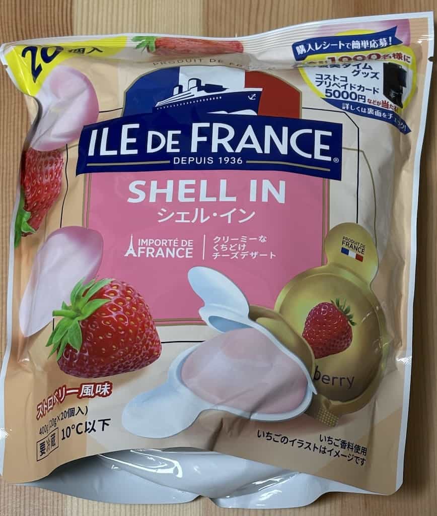 コストコで売っているフランスのチーズブランド「イル・デ・フランス」製のミニシェル(ストロベリー風味)は直径約4cmの丸いクリームチーズです。ストロベリー風味が程よく、チーズのクセも少ないので食べやすいと思います。個人的にはバニラ風味より好きな味でした。小腹が空いたときにぴったりで、1個当たり約57円なのでコスパは悪くないと思います。