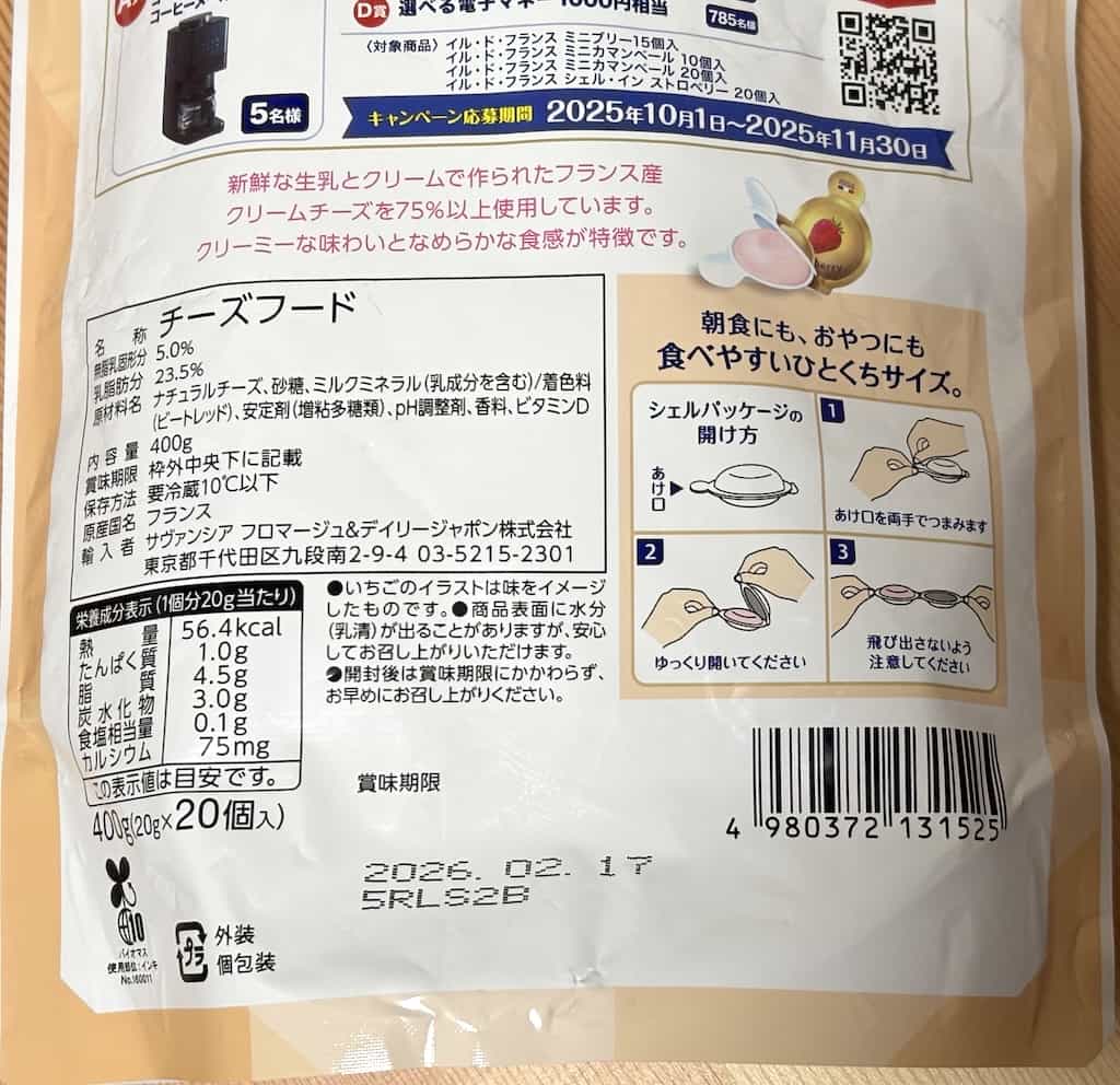 1個約57円でフランス製のクリームチーズが味わえます。コスパは高いと思います。