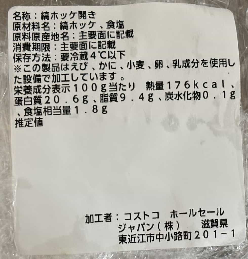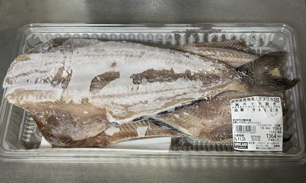 コストコの鮮魚コーナーにある縞ほっけ開きは長さ30cmを超えるビッグサイズで、身も分厚いです。開いてあるのでカットして焼くだけで美味しく食べることができます。個人的に塩分は結構強めに感じました。1枚あたり2人前くらいあり約472円前後なので、コスパは悪くないと思います。